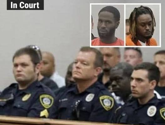 In court, suspects Demitrius Cross and Martel Chisolm walked into the court room to find a room full of police officers who showed up to honor their brother in blue.